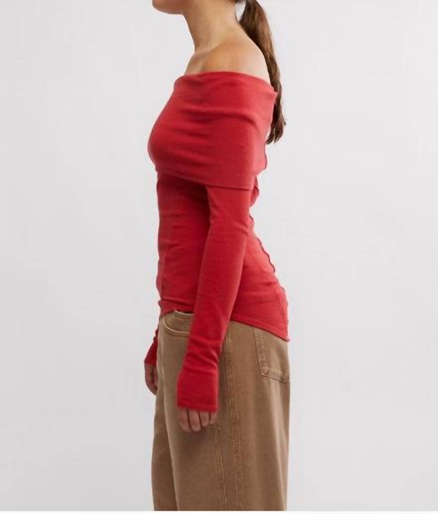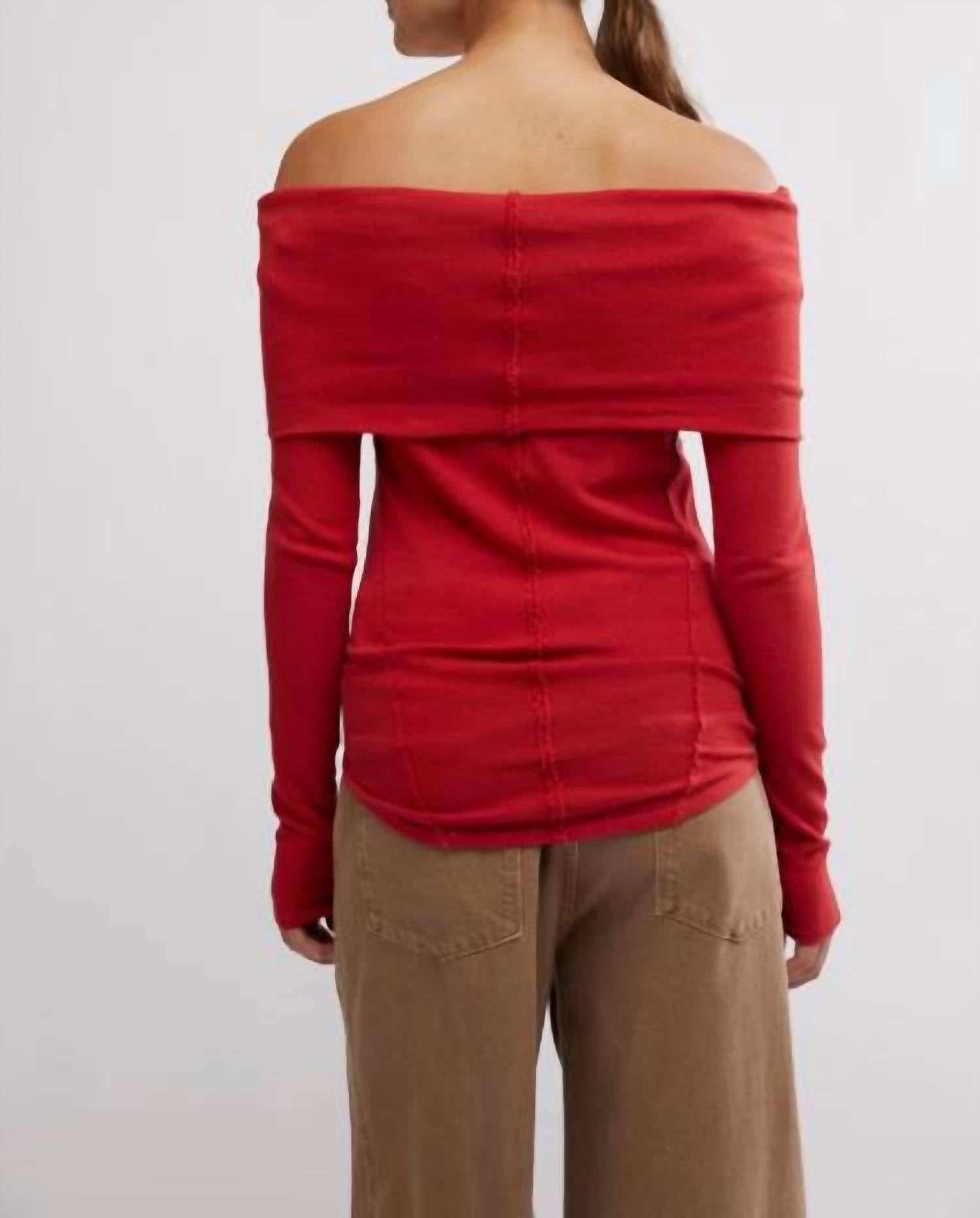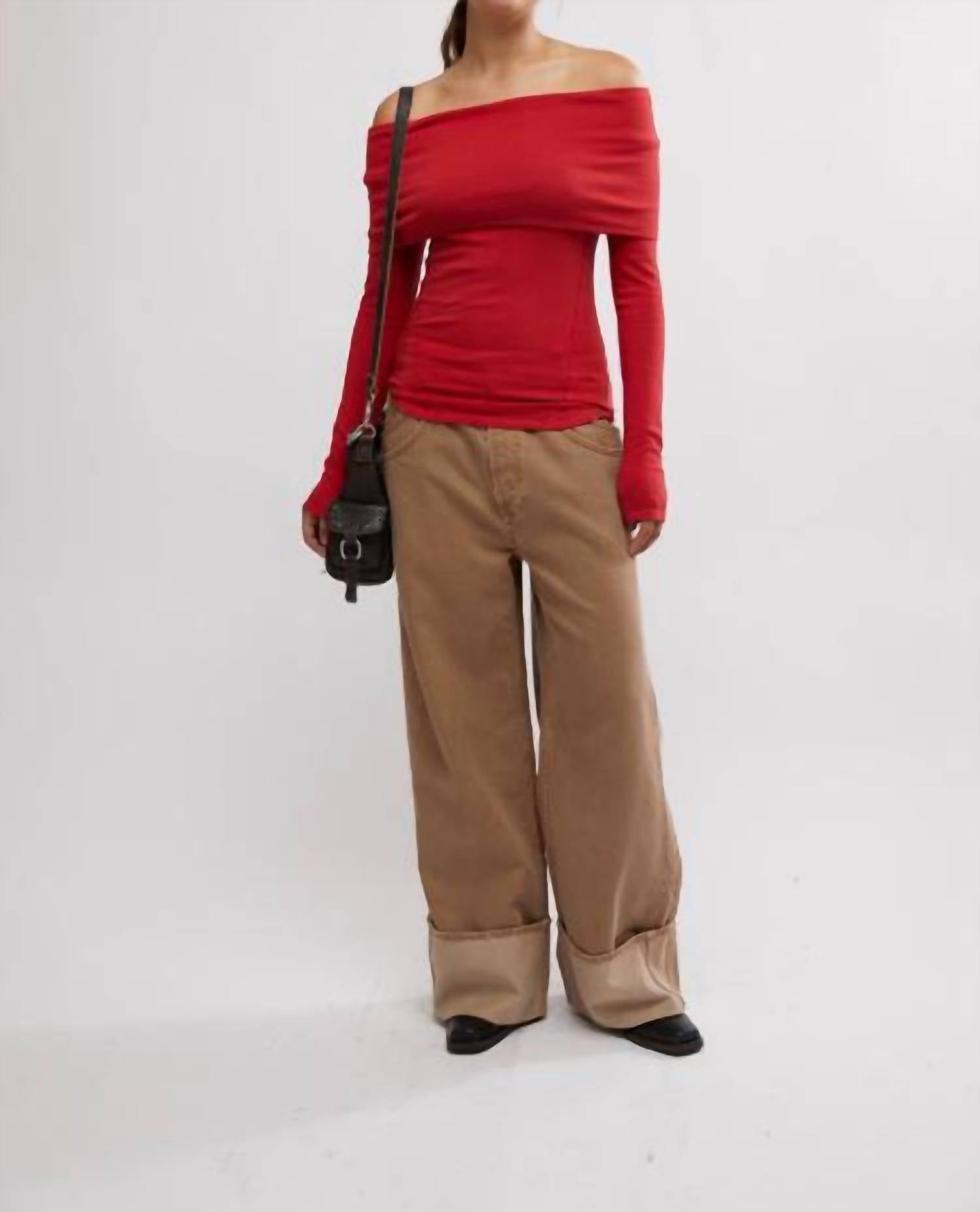 Slim, relaxed fit. Soft cotton fabric. Off-the-shoulder with folded neckline. Fitted long sleeves with exposed seam detailing.