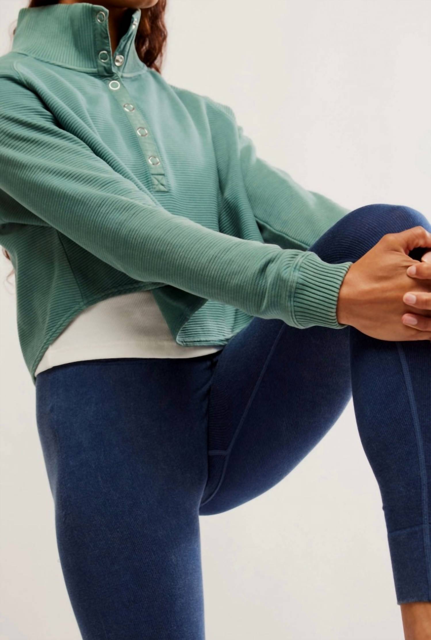 Whether you're running around town or lounging at home, this sweatshirt works for both. Elevate your casual wardrobe with the So Fly Henley Layer by Free People. Featuring long sleeves and composed of 100% Cotton, this cozy top offers a relaxed silhouette with ribbed detailing at the cuffs and an oversized collar. Its unique textured pattern adds a touch of effortless chic, complemented by snap closures at the neck. Garment length is 19.5 inches, offering a comfortable fit, and it can be easily maintained with machine wash care instructions.