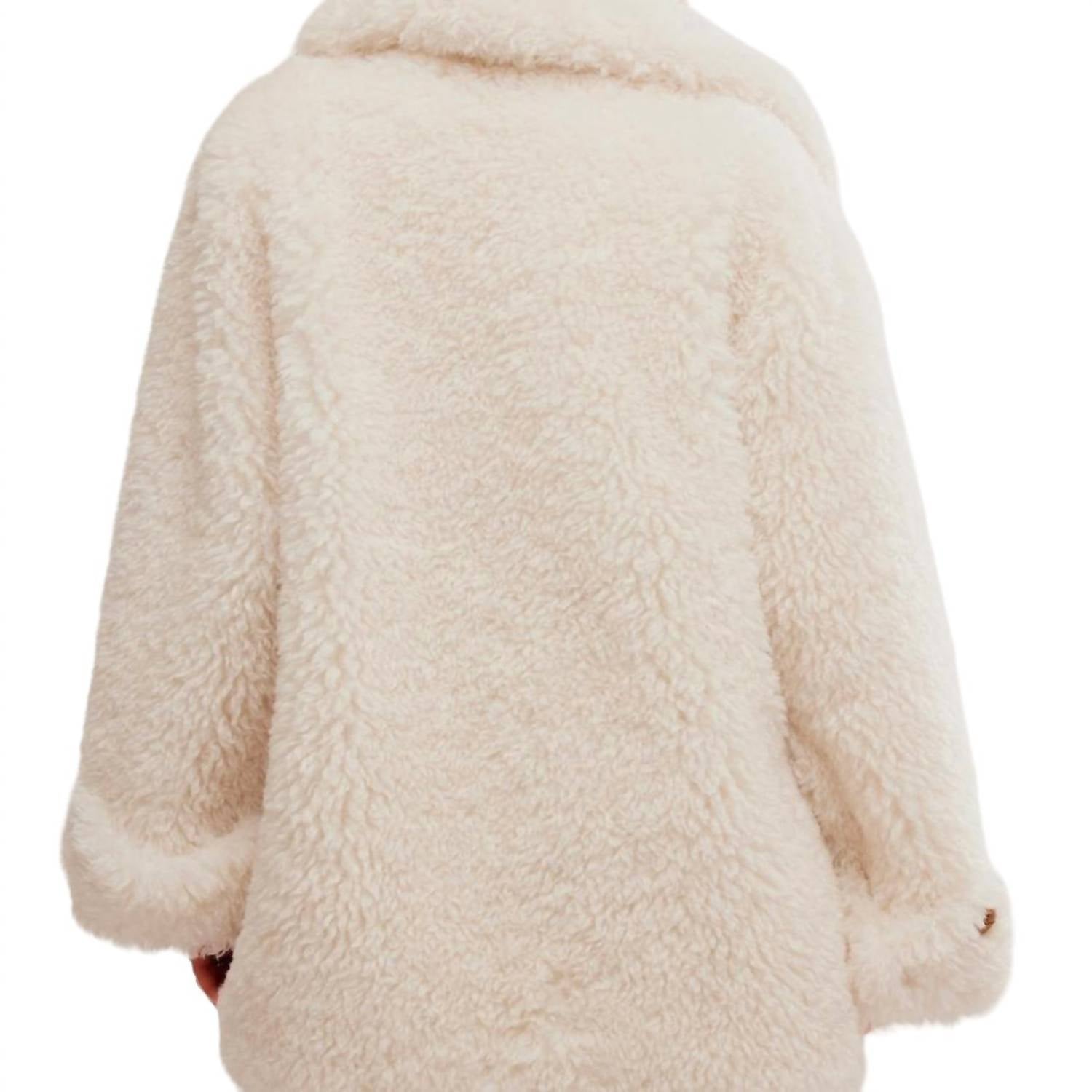 Embrace ultimate coziness with this super soft faux fur jacket. It features a slouchy silhouette, hidden snap closures, and front slip pockets for added convenience. Made from 80% acrylic and 20% polyester with a 100% polyester lining. Dry clean only.