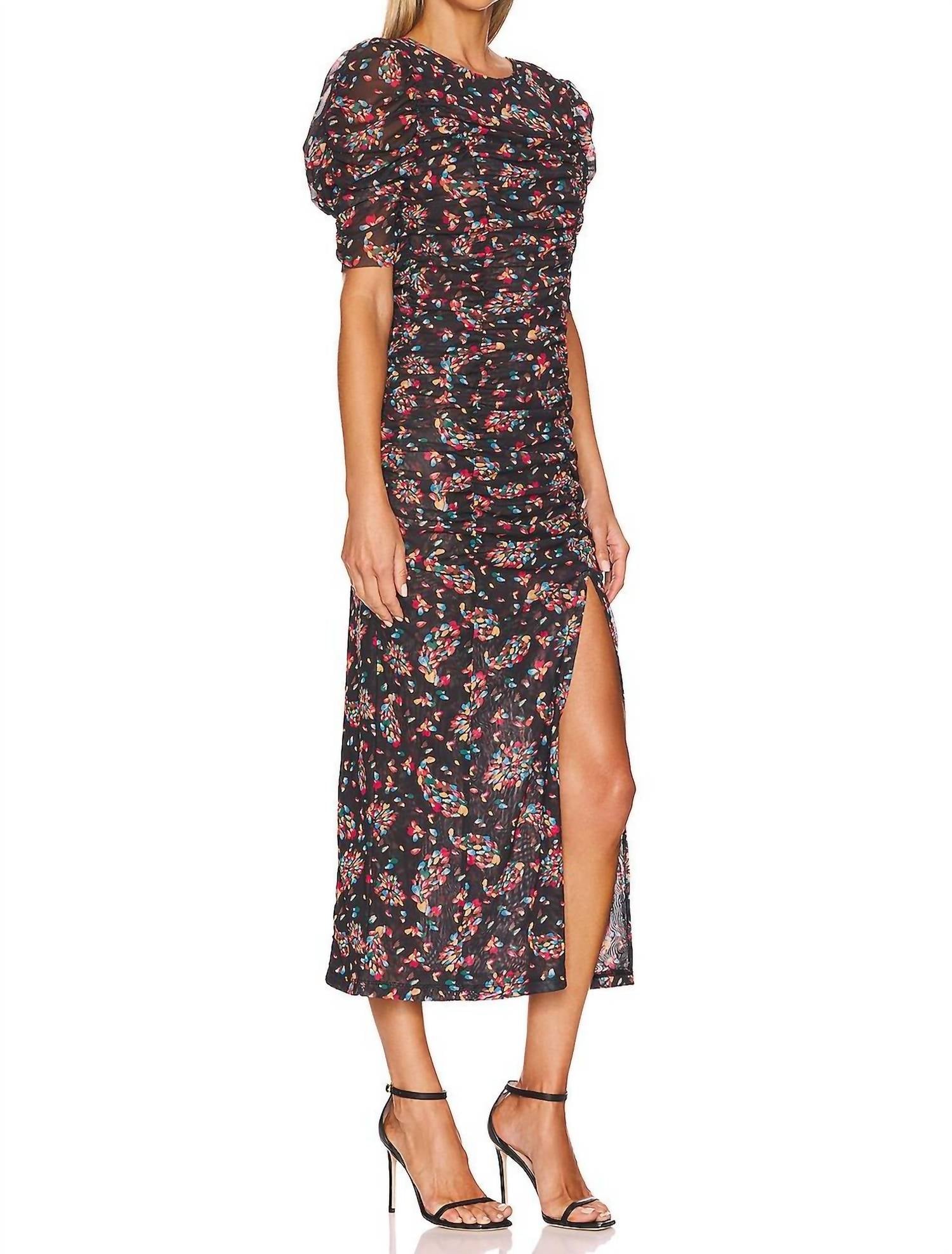 Just add slides or mules and you are good to go. Introducing the Briella Midi Dress by Free People, a stunning blend of style and comfort in a striking Black Combo. This masterpiece features a ruched mesh fabric with an elegant side slit adding subtle allure.