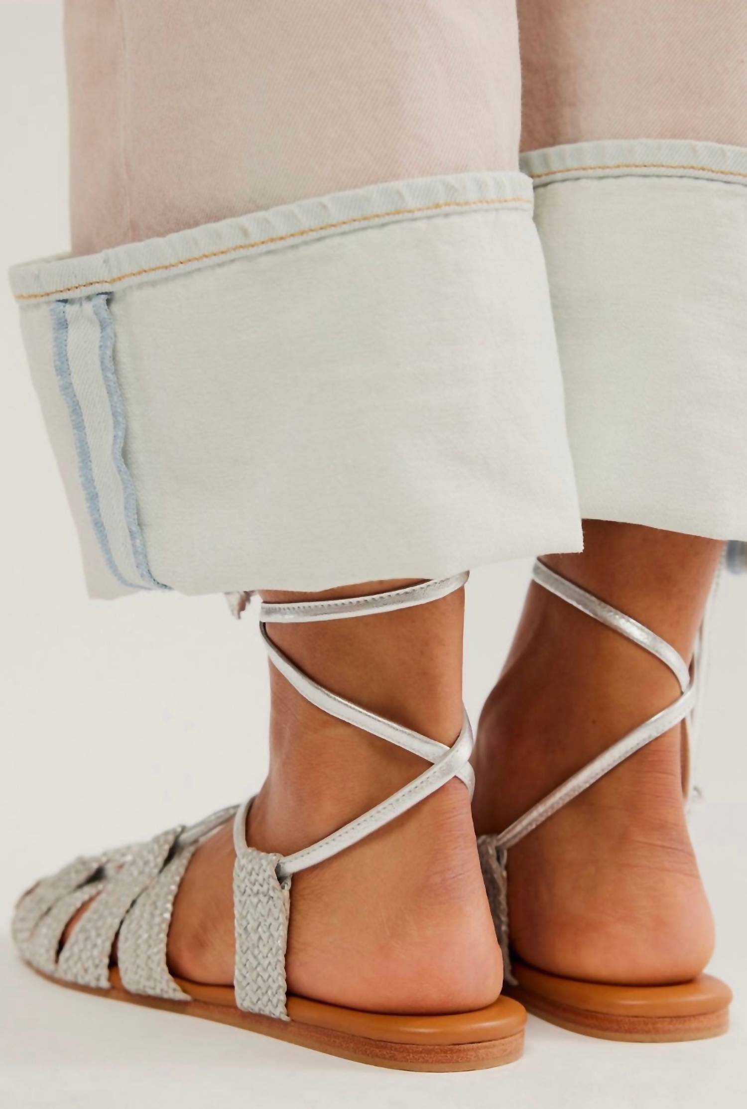 Step into breezy elegance with the Women's Sunny Gilly Flats by Free People, a perfect blend of coastal charm and artisan craftsmanship. These slip-on, backless flats feature a fisherman-inspired design with woven leather segments and lace-up straps, creating a standout round toe silhouette. Made from fine leather and rubber, this pair is ideal for pairing with linens and billowing dresses for a relaxed, stylish look. Experience the vintage aesthetic signature to FP Collection with this essential addition to your wardrobe.