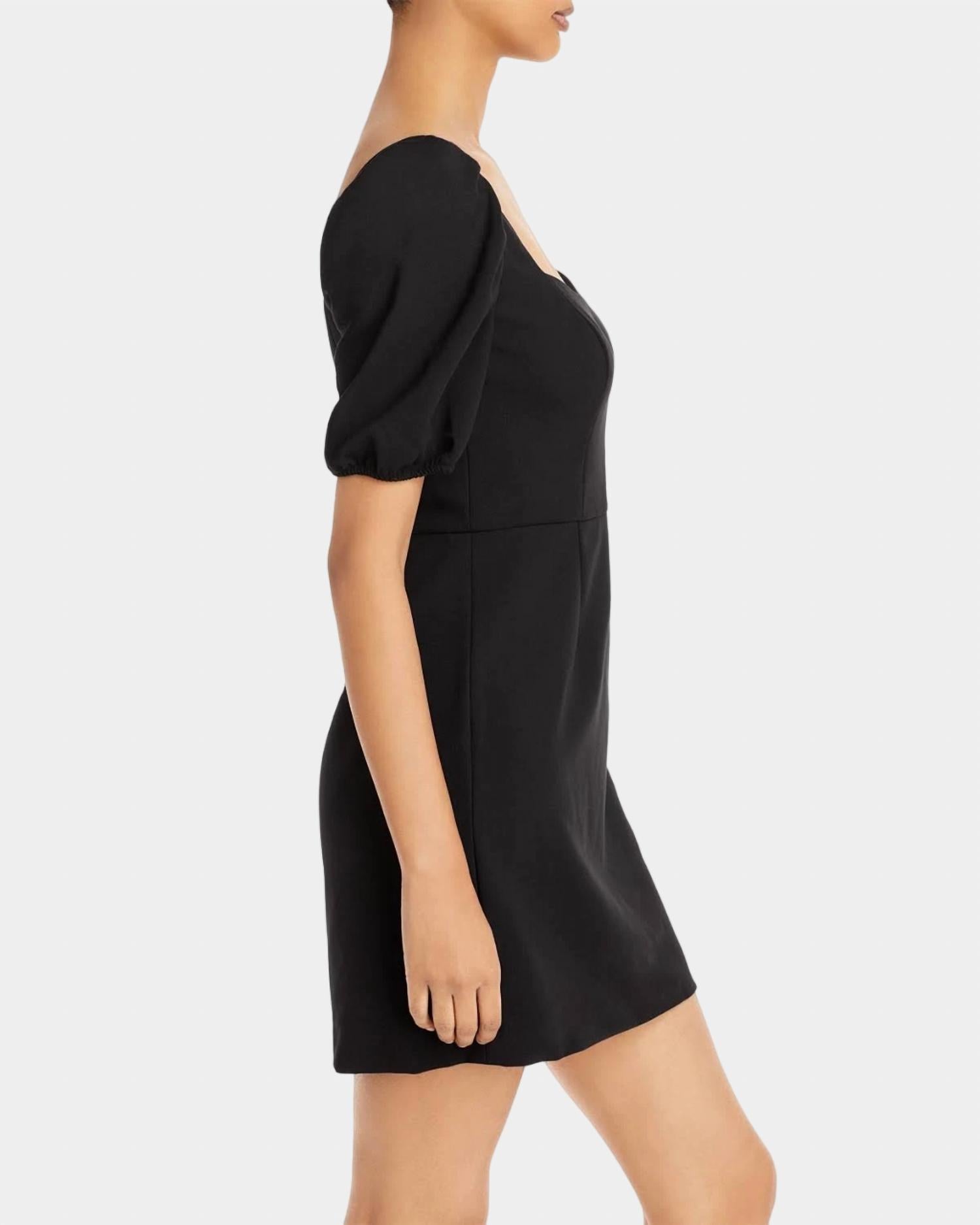 The perfect mini dress for those warmer months. Sweetheart neck. Short puff sleeves. Bodycon silhouette. Back zip closure. Partially lined. Shell: 63% Polyester/ 32% viscose/ 5% elastane; Lining: 100% polyester. US size 4 length is 70 cm. We recommend sizing up if between sizes. Style code - 71IZQ.