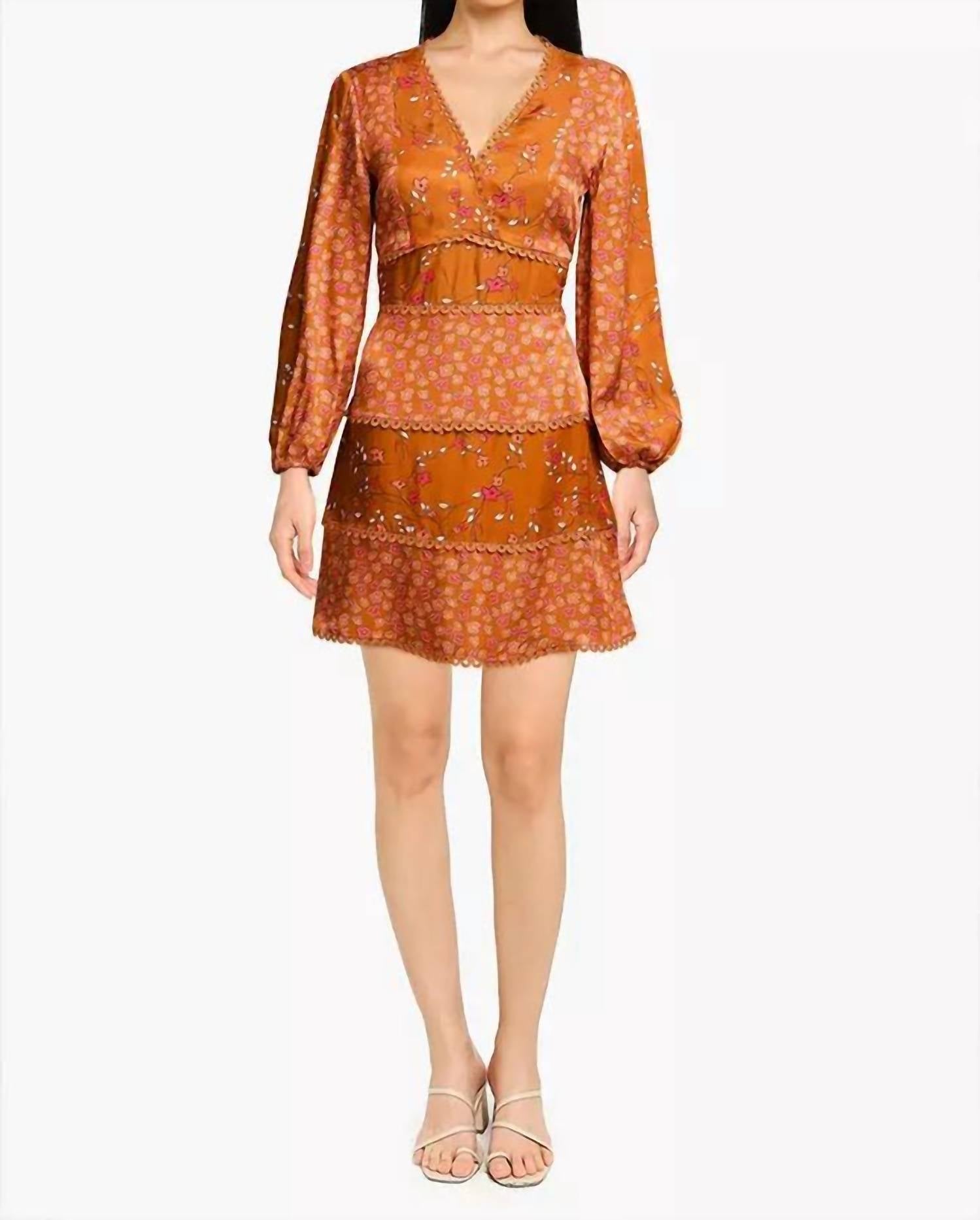 The pefect long sleeve dress for those cooler months. polyester softKU: D7591AA3B1F42BGS Color: Glazed Ginger Multi Sleeve Style: Puff Sleeve Neck: V-neck Pattern: Floral Length: Mini Type: A-line Style: Sexy