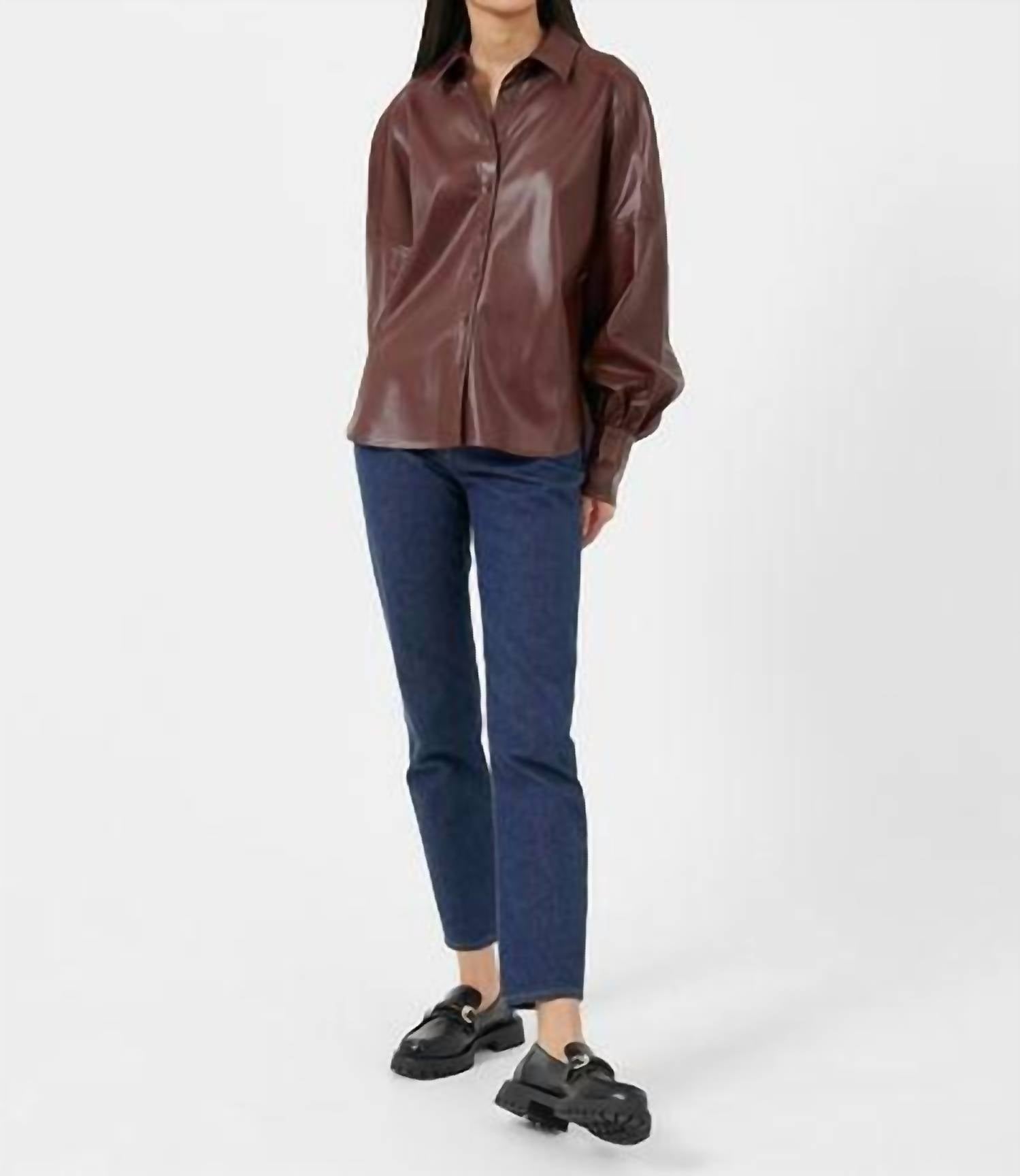 Bold and statement-making, this blouse features dramatic puffed long sleeves and a sleek high-shine finish. Designed with a structured collar, button-down front, and a pleated back, it brings a modern edge to any outfit—perfect for those who love standout style with a polished touch.