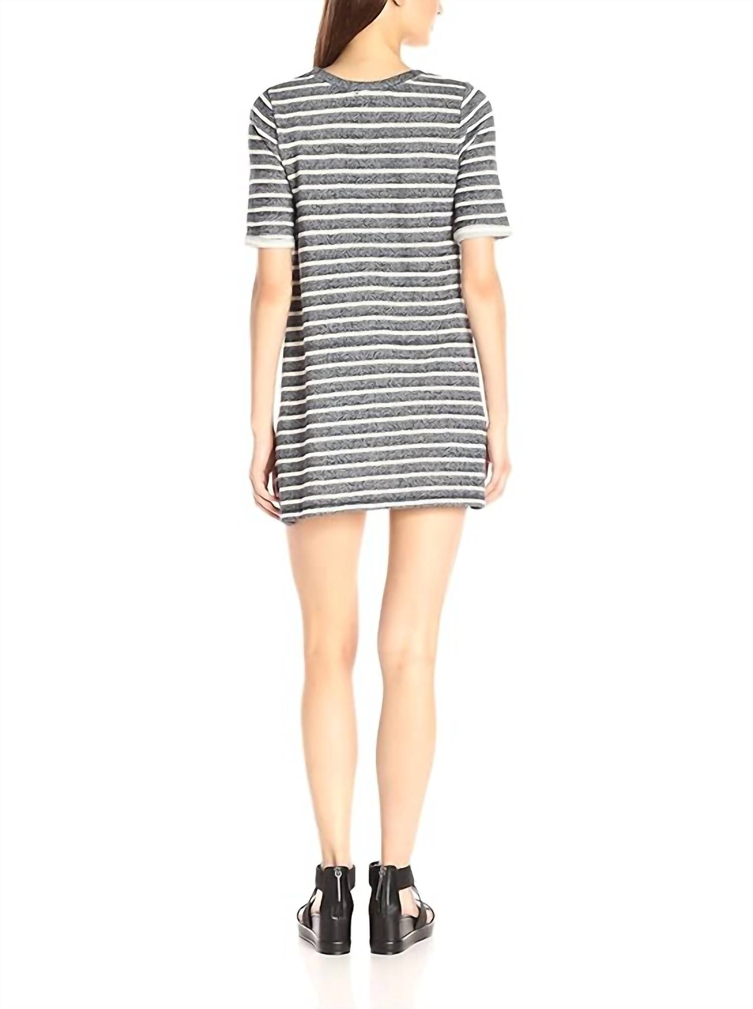 A short and breezy dress for those warmer days. Embrace casual elegance with the Normandy Stripe Short Sleeve Jersey T-Shirt Dress by FRENCH CONNECTION. This versatile mini dress features a loose fit and stylish striped design, crafted from 100% cotton for lightweight comfort. Sleeve Length: Short Sleeve. Length: 32.5". Closure: Pull-on style. Additional features include convenient patch front pockets and a crewneck neckline, perfect for easy, everyday wear.