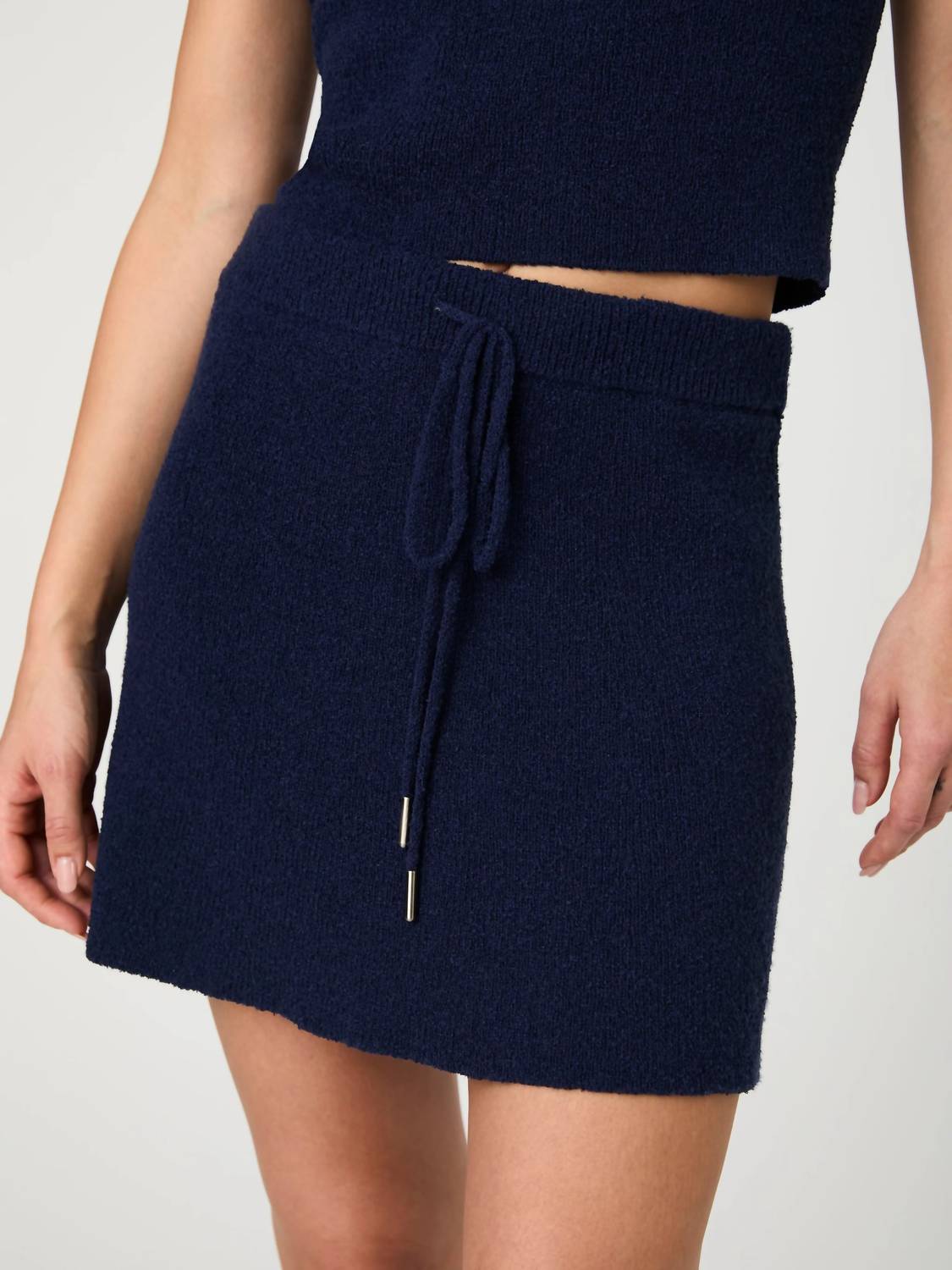 Tuck in your favorite tee for a more laid-back vibe. Elevate your spring wardrobe with the Terry Mini Skirt by French Connection, a chic piece in Midnight Blue. This A-line skirt is made from a textured, stretchy terry-knit fabric, featuring a playful 15.5" length. It offers a comfortable and customizable fit with a drawstring elastic waistband and a convenient pull-on closure. Composition: Polyester and Lycra® spandex. Care: Machine wash, lay flat to dry. Perfect for travel or 4th of July festivities. Imported.