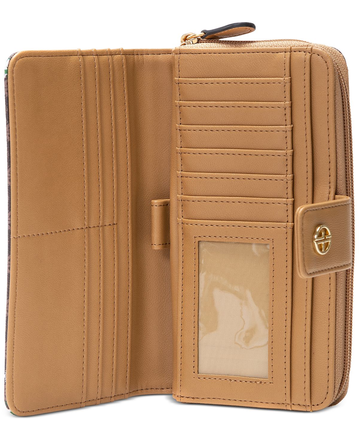 Keep all your cards and cash organized in fun and festive style with this charming wallet from Giani Bernini.| 7-1/2W x 4H x 1-1/2 D; 0.70 lbs. approx. weight| Snap closure| Gold-tone exterior hardware| 1 back slip pocket & logo charm| 1 interior TK|