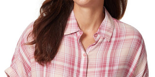 Gloria Vanderbilt Women's Plaid Pleated Back Button Down Top Pink Size Small