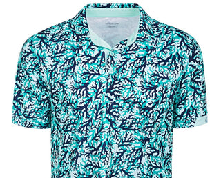 Attack Life By Greg Norman Men's All Over Print Coral Polo Shirt Blue Size Medium