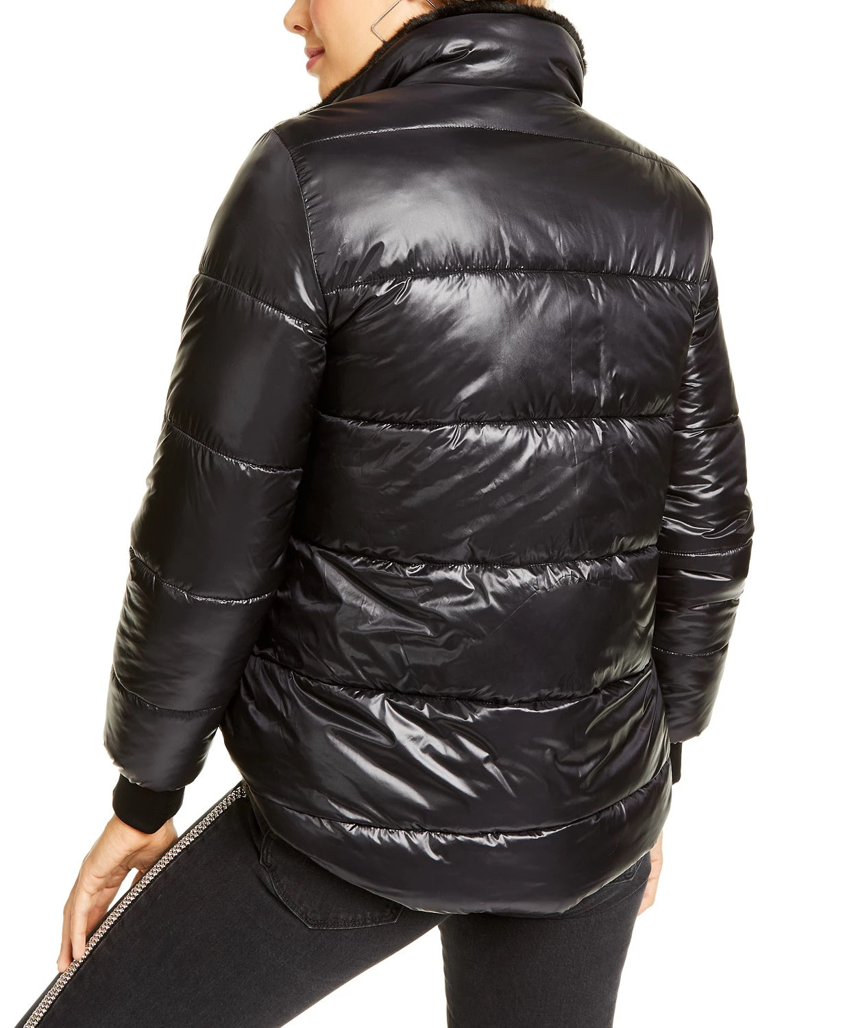 Stand collar; zipper closure at front|Reversible style: quilted at one side; faux-Faux finish at the other|Two front pockets at both sides|Unlined|Quilted shell: polyester; Faux: acrylic/polyester; lining: polyester