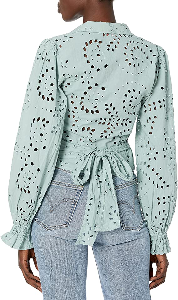 GUESS Women's Kamy Eyelet Tie Front Wrap Top Green Size M