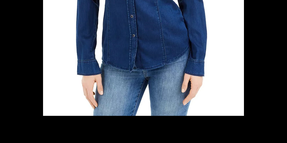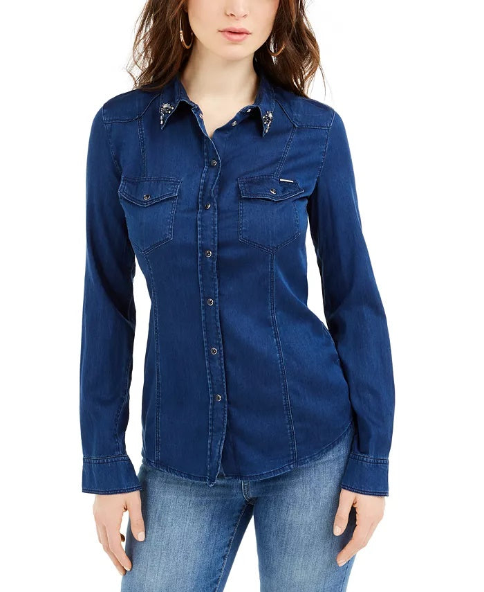Guess Women's Lalima Embellished Denim Shirt Blue Size X-Small