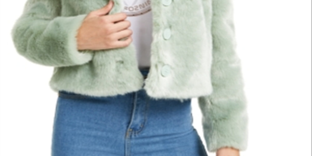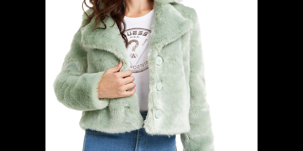 Guess Women's Minted Faux Fur Coat Green Size XL