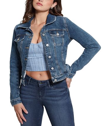 GUESS Women's Sexy Denim Trucker Jacket Blue Size Large