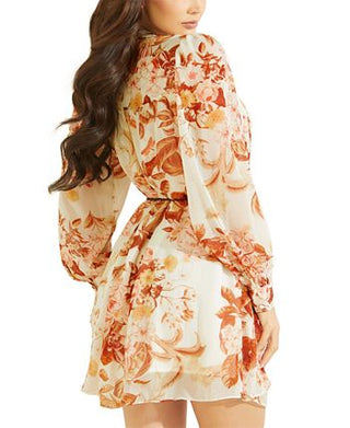 GUESS Women's Morgane Floral Print Belted Chiffon Dress White Size Medium