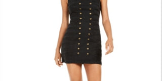 Guess Women's Embellished Long Sleeve V Neck Short Evening Body Con Dress Black Size 10