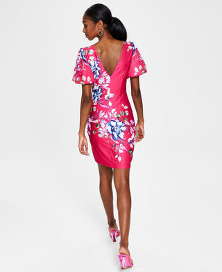 GUESS Women's Plunge Neck Puff Sleeve Dress Pink Size 2