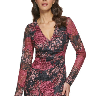 GUESS Women's Printed Lace Sheath Dress Black Size 4