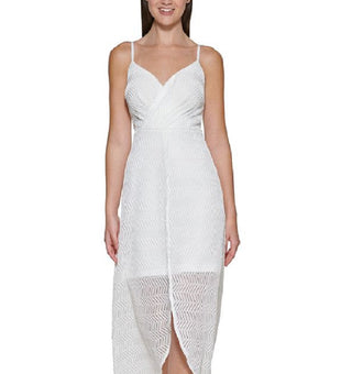 GUESS Women's V Neck Asymmetrical Dress White Size 12