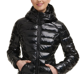 GUESS Women's Hooded Shine Puffer Coat Black Size Small