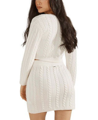 GUESS Women's Dora Cable Knit Crop Sweater White Size X-Small