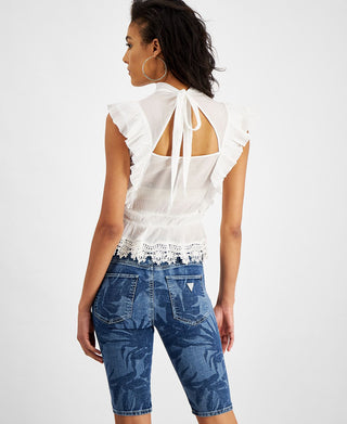 GUESS Women's Jamie Cotton Lace Detail Top White Size Medium