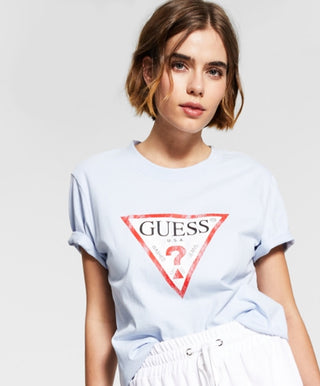 GUESS Women's Classic Fit Logo Graphic T-Shirt Blue Size Small