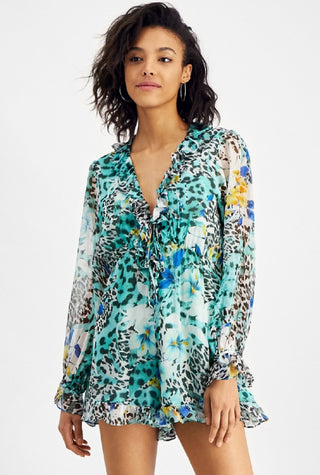 GUESS Women's Emma Silk Ruffled Romper White Size Medium