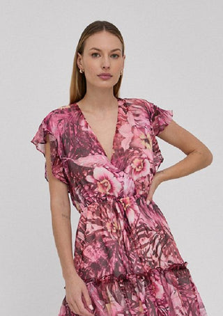 GUESS Women's Rosa Floral Print Flutter Sleeve Dress Pink Size Large