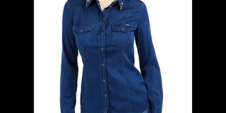 Guess Women's Lalima Embellished Denim Shirt Blue Size X-Small