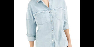 Guess Women's Parisian Frayed Edge Denim Shirt Blue Size X-Small