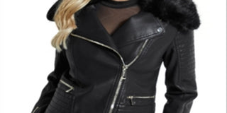 Guess Women's Faux Leather Faux Fur Motorcycle Jacket Black Size X-Large