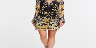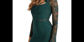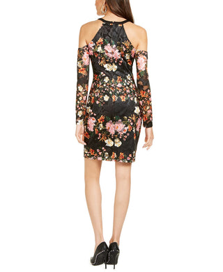 Guess Women's Cold Shoulder Floral Long Sleeve Halter Short Body Con Dress Black Size 0