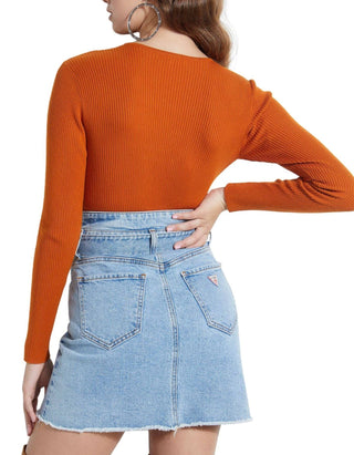 GUESS Women's Long Sleeve Keyhole Top Brown Size Medium