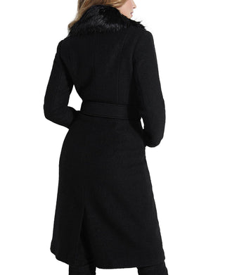 GUESS Women's Maria Faux Fur Collar Walker Coat Black Size M