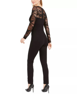 GUESS Women's Sheer Sleeve Cut-Out Jumpsuit Black Size Medium
