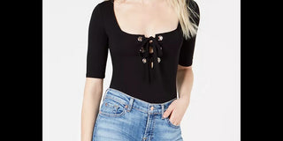 Guess Women's Sabrina Lace Up Bodysuit Black Size Large