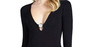 Guess Women's Cybill V Neck Bodysuit Black Size Medium