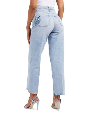 GUESS Women's Melrose Straight Leg Embellished Jeans Blue Size 28X30