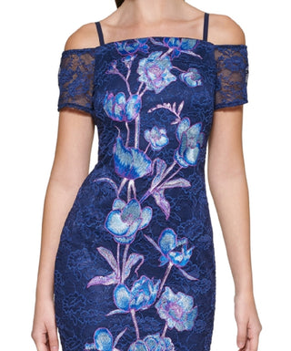 GUESS Women's Embroidered Floral Bodycon Dress Blue Size 8