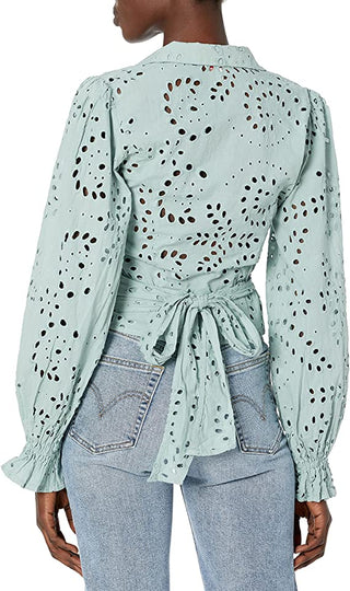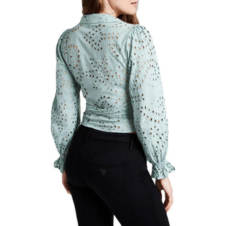 GUESS Women's Kamy Eyelet Wrap Blouse Green Size Large