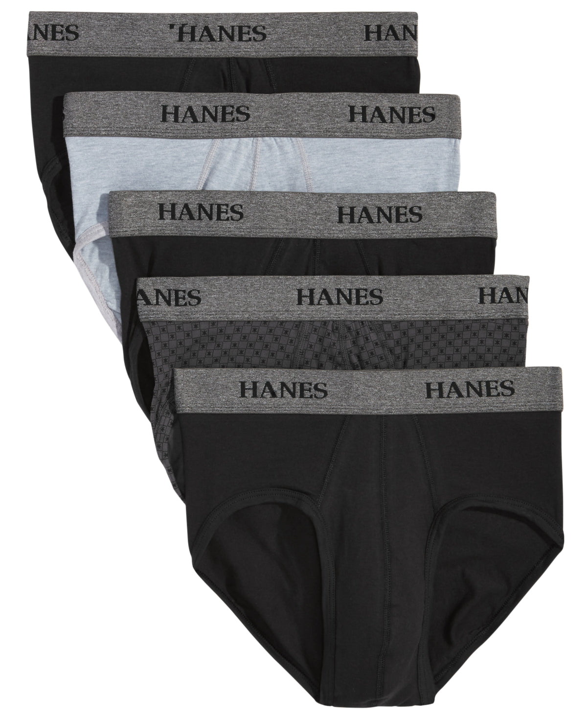 Stock up on all-day comfort with this 5 pack of briefs from Hanes| a classic look recast in fresh color. Stretch fabric moves with you| while moisture-wicking technology works to help keep you dry.| Includes five pairs| Tagless ComfortFlex waistband| Shaped front panel for added support| Stretch fabric moves with you