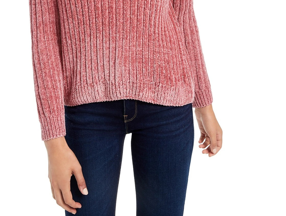 Hippie Rose Juniors' Chenille Turtleneck Sweater Brght Pink Size Medium