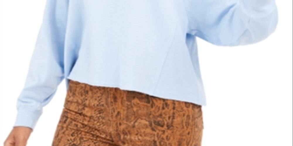 Hippie Rose Junior's Cropped Raw Edged Sweatshirt Blue Size Large