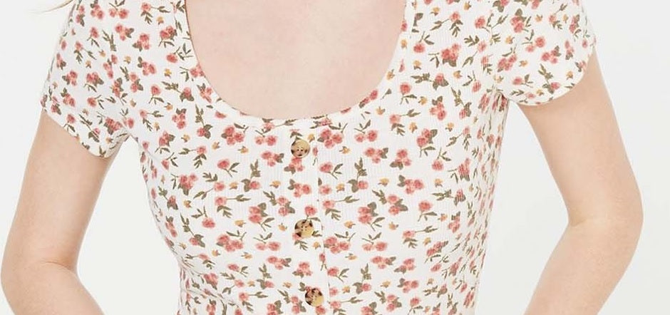Hits at hip|Scoop neckline; decorative buttons at front|Ribbed knit|Runs small, we suggest sizing up for the perfect fit|Polyester/rayon/spandex