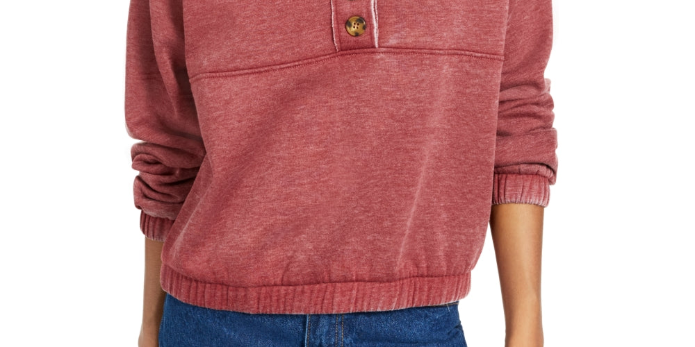 Relaxed fit|Henley neckline with attached self hood; button placket|Elasticized cuffs and waist|Long raglan sleeves|Runs small; we suggest sizing up for the perfect fit
