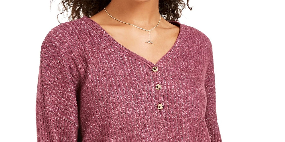 Hippie Rose Juniors' Henley Waffle Knit Top Med Pink Size X-Small
