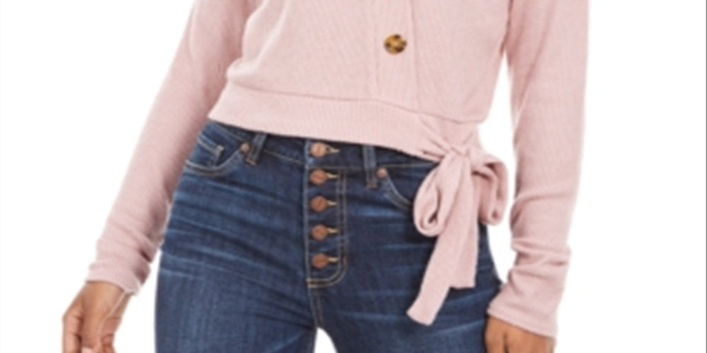 Fitted silhouette| Surplice neckline; ties at waist| Front button trim; marled rib-knit fabric| sleeves