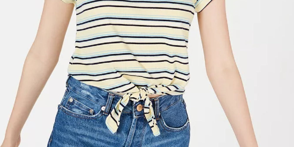 Hippie Rose Junior's Tie Front T-Shirt Yellow Size Medium