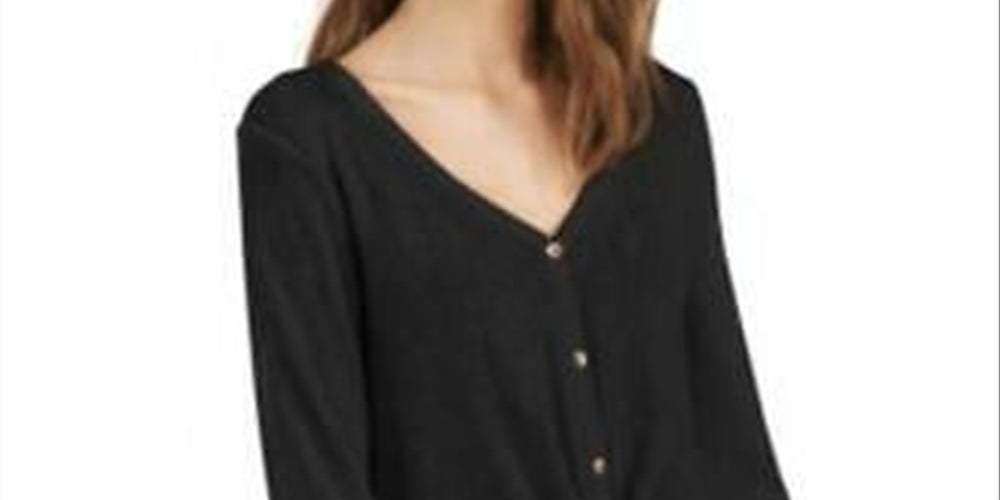 Hippie Rose Junior's Twist Front Button Up Top Black Size X-Small